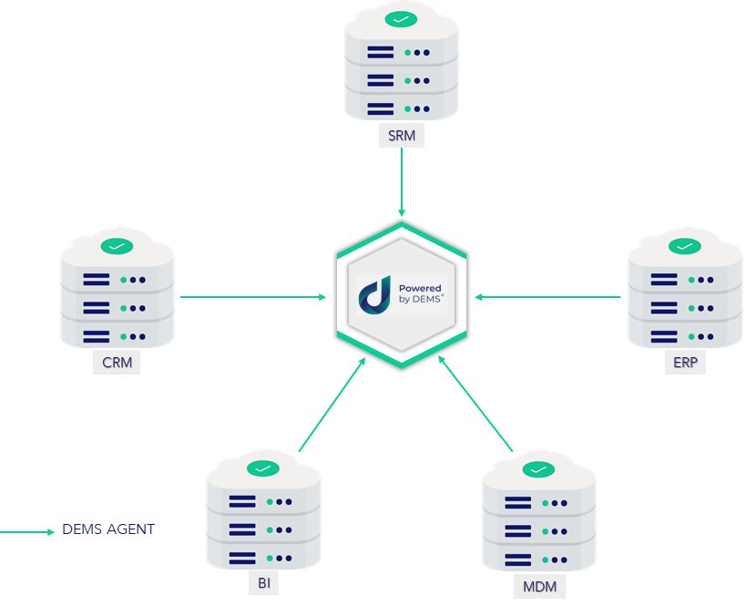 DEMS fait le lien entre les exigences métier et les systèmes d’information (système de gouvernance, application du Business market, CRM, ERP, SRM et autres) en combinant les métadonnées métier et techniques. Il peut combiner de nombreuses structures de métadonnées techniques différentes provenant de diverses bases de données, ainsi, les utilisateurs peuvent construire leurs propres connecteurs directement dans le référentiel de connexion.